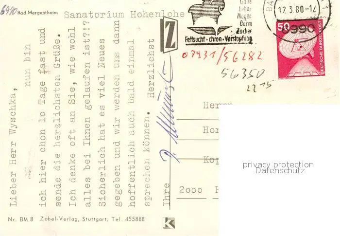 Bad_Mergentheim 0 Bad_Mergentheim postalisch gelaufen 1980 Erhaltung siehe scans [FriedD77] Frierer