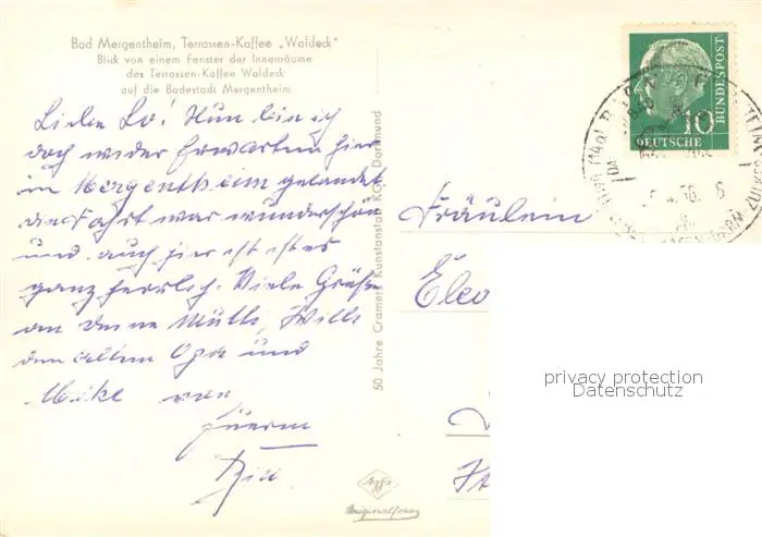 Bad_Mergentheim Terrassen Kaffee Waldeck Fensterblick Bad_Mergentheim postalisch gelaufen 1956 Erhaltung siehe scans [FriedD77] Frierer