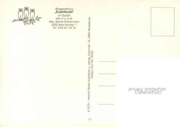 Bad_Muender Berggasthaus Eulenflucht im Suentel Gastraeume Freiterrasse Bad_Muender postalisch nicht gelaufen nach 1965 Erhaltung siehe scans [WerneD78] WernPID7