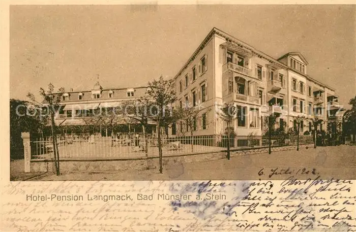 Bad_Muenster Kategorie Alte Ansichtskarten Postkarten bx68554 Bad_Muenster_Stein_Ebernburg Hotel Pension Langmack Bad_Muenster postalisch gelaufen 1912 Erhaltung siehe scans [KathaD81]