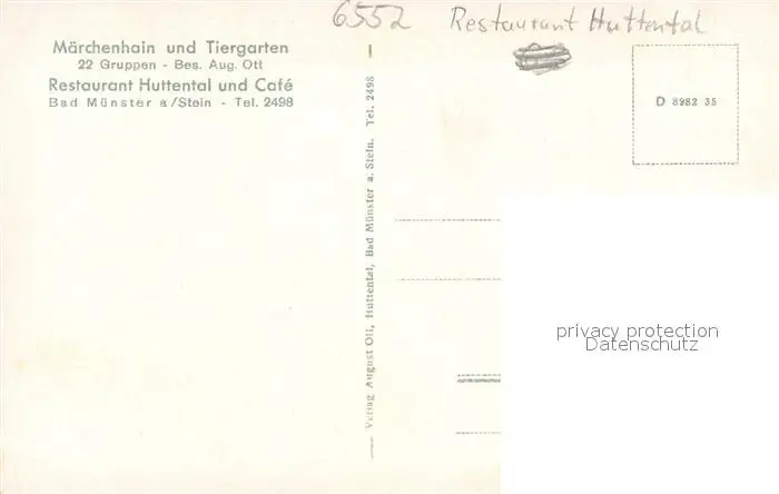 Bad_Muenster_Stein_Ebernburg Maerchenhain Restaurant Huttental Bad_Muenster postalisch nicht gelaufen 1921-1965 Erhaltung siehe scans [FriedD77] Frierer