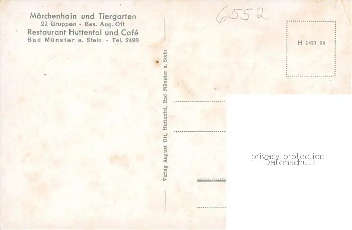Bad_Muenster_Stein_Ebernburg Maerchenhain u. Tiergarten Restaurant Huttental-Birkensaal Bad_Muenster postalisch nicht gelaufen 1921-1965 Erhaltung siehe scans [LiesaD40] LiesID40