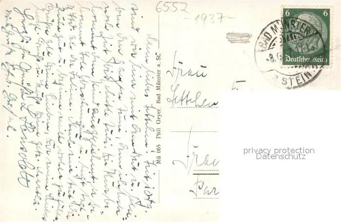 Bad_Muenster_Stein_Ebernburg Panorama Nahetal mit Rheingrafenstein Bad_Muenster postalisch gelaufen 1937 Erhaltung siehe scans [FriedD77] Frierer