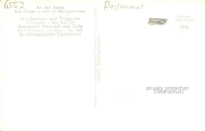 Bad_Muenster_Stein_Ebernburg Restaurant Huettental und Café Maerchenhain Tiergarten an der Nahe Rheingrafenstein Bad_Muenster postalisch nicht gelaufen 1921-1965 Erhaltung siehe scans [FriedD77] Frierer