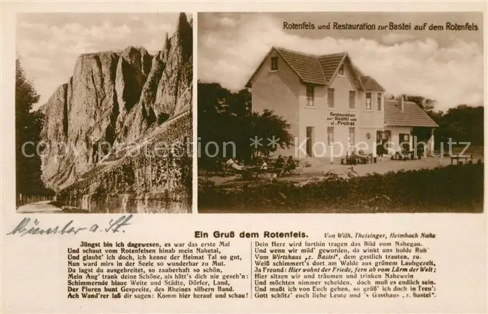 Bad_Muenster_Stein_Ebernburg Restauration zur Bastei auf dem Rotenfels Gedicht Wilhelm Theisinger Bad_Muenster postalisch nicht gelaufen 1921-1965 Erhaltung siehe scans [FriedD77] Frierer