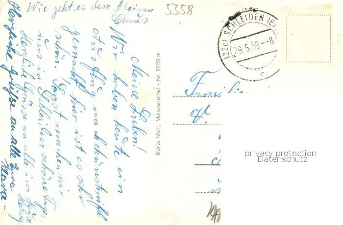 Bad_Muenstereifel Astropeiler Windeckhaus Kirche Rathaus Orchheimer Tor Kurhaus Badeanstalt Blick von der Burg Stadtpanorama Bad_Muenstereifel postalisch gelaufen 1959 Erhaltung siehe scans [FriedD77] Frierer