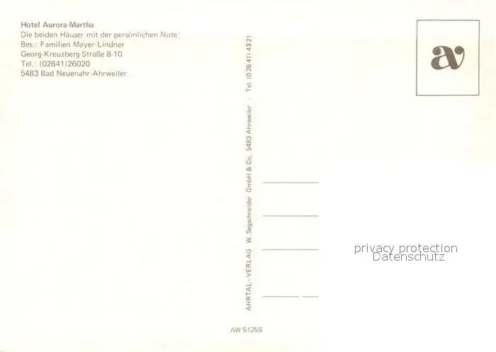 Bad_Neuenahr-Ahrweiler Hotel Aurora Martha Bad_Neuenahr-Ahrweiler postalisch nicht gelaufen nach 1965 Erhaltung siehe scans [WerneD78] WernPID7