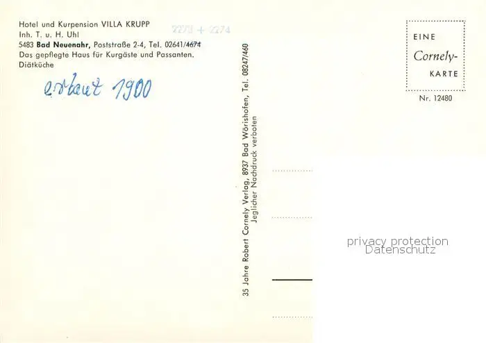 Bad_Neuenahr-Ahrweiler Hotel und Kurpension Villa Krupp Bad_Neuenahr-Ahrweiler postalisch nicht gelaufen nach 1965 Erhaltung siehe scans [WerneD78] WernPID7