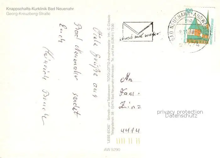 Bad_Neuenahr-Ahrweiler Knappschafts Kurklinik Bad_Neuenahr-Ahrweiler postalisch gelaufen 1998 Erhaltung siehe scans [FriedD77] Frierer