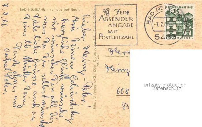 Bad_Neuenahr-Ahrweiler Kurhaus bei Nacht Springbrunnen Bad_Neuenahr-Ahrweiler postalisch gelaufen 1966 Erhaltung siehe scans [FriedD77] Frierer
