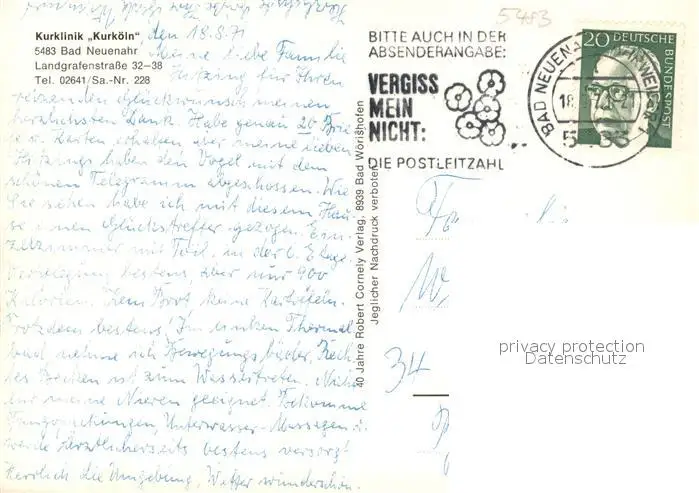 Bad_Neuenahr-Ahrweiler Kurklinik Kurkoeln Speisesaal Therapiebecken Wassertretanlage Bad_Neuenahr-Ahrweiler postalisch gelaufen 1971 Erhaltung siehe scans [FriedD77] Frierer