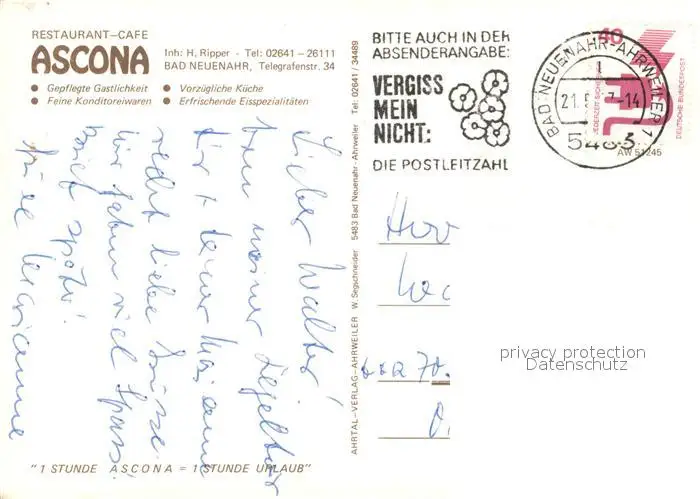 Bad_Neuenahr-Ahrweiler Restaurant Ascona Bad_Neuenahr-Ahrweiler postalisch gelaufen nach 1965 Erhaltung siehe scans [NatalD47] NataID47