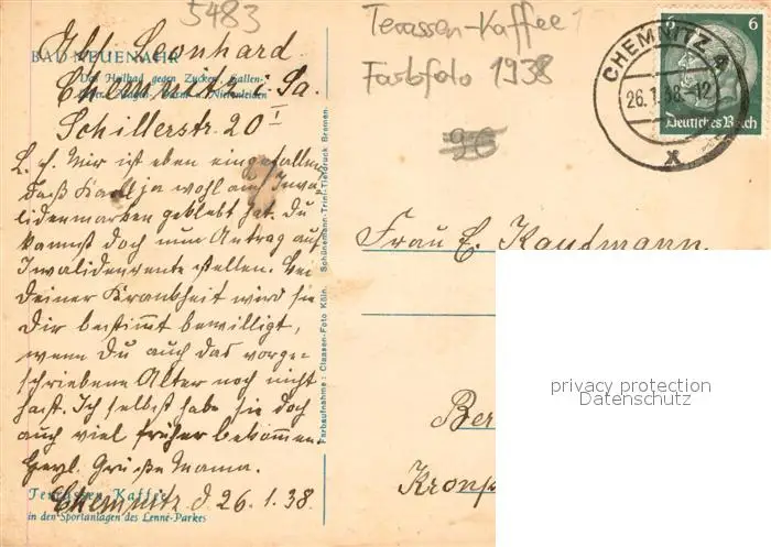 Bad_Neuenahr-Ahrweiler Terrassen Café in den Sportanlagen des Lenné Parkes Bad_Neuenahr-Ahrweiler postalisch gelaufen 1938 Erhaltung siehe scans [FriedD77] Frierer