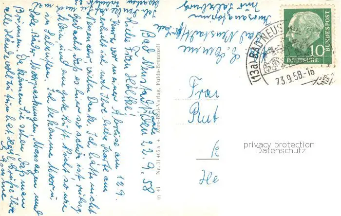 Bad_Neustadt Badeviertel Blick von der Salzburg Wandelhalle Bad_Neustadt postalisch gelaufen 1958 Erhaltung siehe scans [FriedD77] Frierer