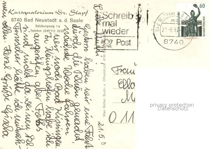 Bad_Neustadt Kursanatorium Dr. Stapf Bad_Neustadt postalisch gelaufen 1992 Erhaltung siehe scans [FriedD77] Frierer
