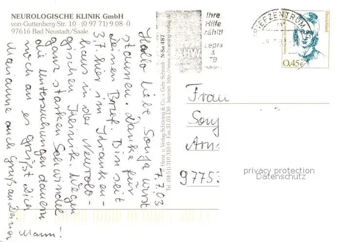 Bad_Neustadt Neurologische Klinik Halle Restaurant Hallenbad Bad_Neustadt postalisch gelaufen 2003 Erhaltung siehe scans [FriedD77] Frierer