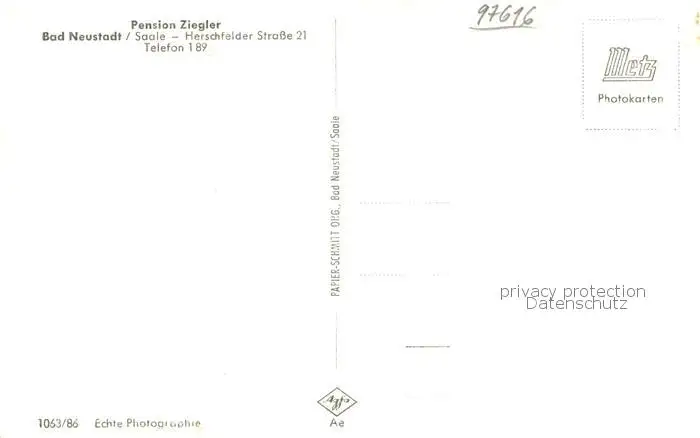 Bad_Neustadt Pension Ziegler Bad_Neustadt postalisch nicht gelaufen nach 1965 Erhaltung siehe scans [WerneD78] WernPID7