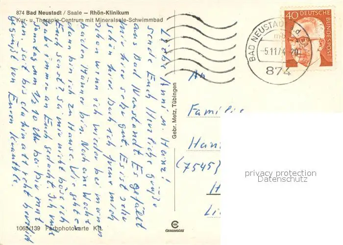 Bad_Neustadt Rhoen Klinikum Freibad Bad_Neustadt postalisch gelaufen 1974 Erhaltung siehe scans [WerneD78] WernPID7
