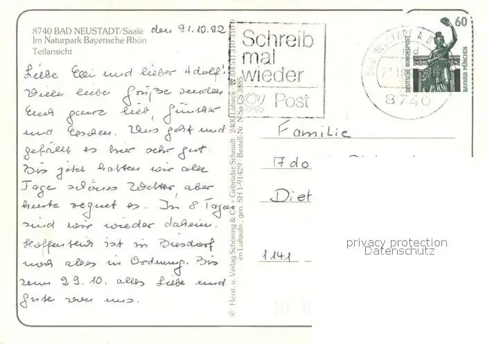 Bad_Neustadt im Naturpark Bayerische Rhoen Fliegeraufnahme Bad_Neustadt postalisch gelaufen 1992 Erhaltung siehe scans [WerneD78] WernPID7