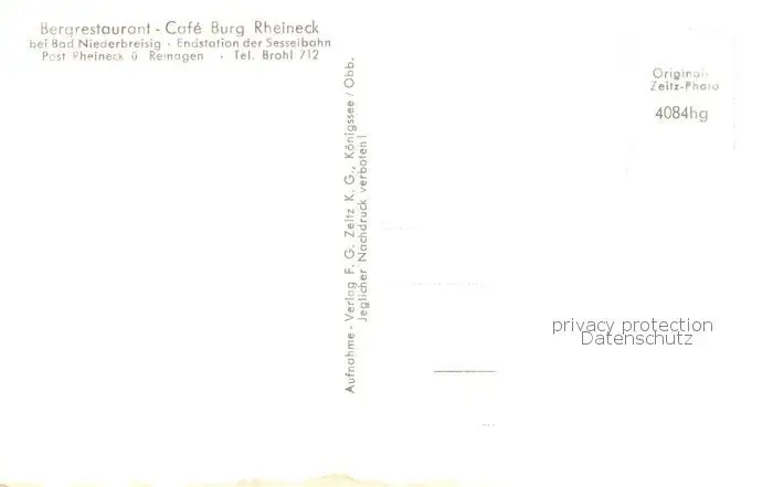 Bad_Niederbreisig Bergrestaurant Cafe Burg Rheineck Bad_Niederbreisig postalisch nicht gelaufen 1921-1965 Erhaltung siehe scans [WerneD78] WernPID7