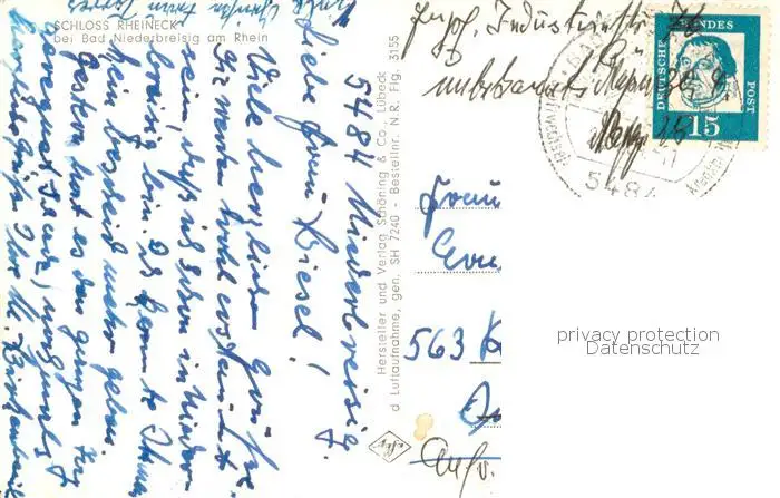 Bad_Niederbreisig Schloss Rheineck Fliegeraufnahme Bad_Niederbreisig postalisch gelaufen 1965 Erhaltung siehe scans [WerneD78] WernPID7