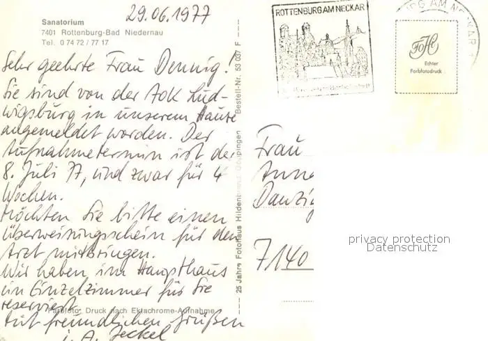 Bad_Niedernau Sanatorium Bad_Niedernau postalisch gelaufen 1977 Erhaltung siehe scans [FriedD77] Frierer