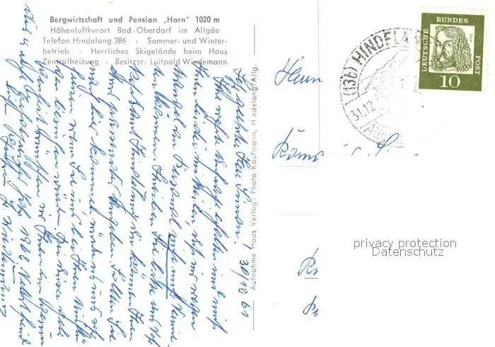 Bad_Oberdorf Kategorie Alte Ansichtskarten Postkarten bx64673 Bad_Oberdorf Bergwirtschaft Pension Horn Winter Bad_Oberdorf postalisch gelaufen 1961 Erhaltung siehe scans [KathaD81]