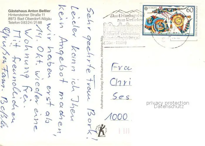Bad_Oberdorf Gaestehaus Anton Bessler Bad_Oberdorf postalisch gelaufen nach 1965 Erhaltung siehe scans [WerneD78] WernPID7
