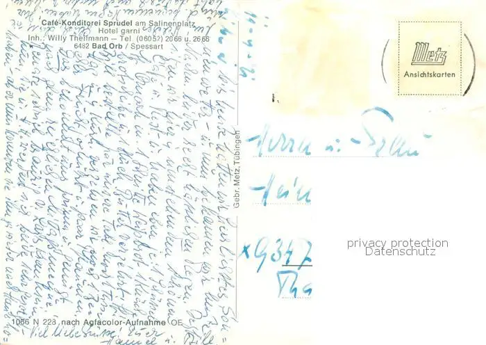 Bad_Orb Cafe Sprudel Salinenplatz Bad_Orb postalisch gelaufen nach 1965 Erhaltung siehe scans [PaolaD17] PaolPID1