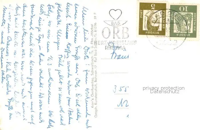 Bad_Orb Fliegeraufnahme mit Spessart Sanatorium Bad_Orb postalisch gelaufen 1965 Erhaltung siehe scans [FriedD77] Frierer