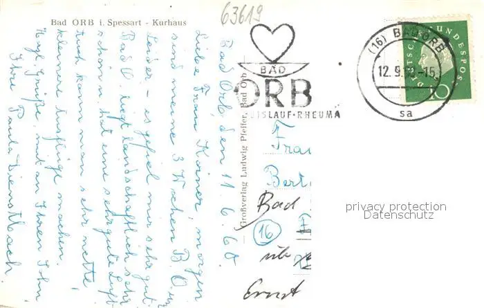 Bad_Orb Kurhaus Bad_Orb postalisch gelaufen 1960 Erhaltung siehe scans [WerneD78] WernPID7