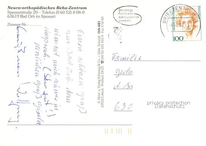 Bad_Orb REHA Zentrum Bad_Orb postalisch gelaufen nach 1965 Erhaltung siehe scans [KathaD81] Kathoren