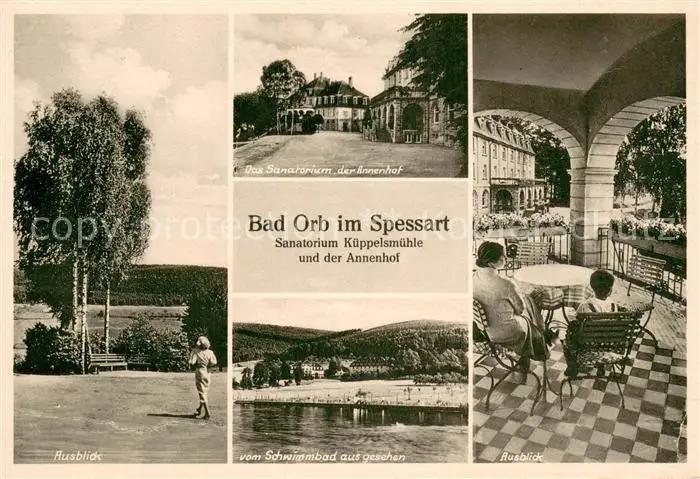 Bad_Orb Sanatorium Kueppelsmuehle und Annenhof Schwimmbad Bad_Orb postalisch nicht gelaufen 1921-1965 Erhaltung siehe scans [FriedD77] Frierer