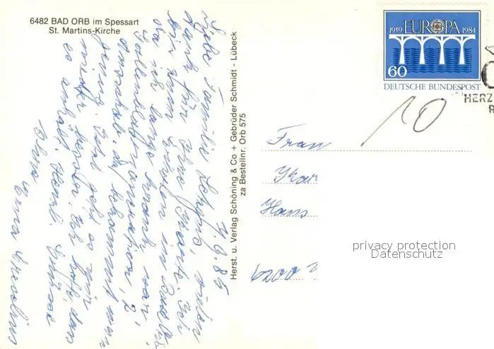 Bad_Orb St. Martins-Kirche Bad_Orb postalisch gelaufen 1985 Erhaltung siehe scans [PaolaD17] PaolPID1