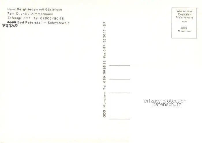Bad_Peterstal-Griesbach Haus Bergfrieden mit Gaestehaus Bad_Peterstal-Griesbach postalisch nicht gelaufen nach 1965 Erhaltung siehe scans [WerneD78] WernPID7