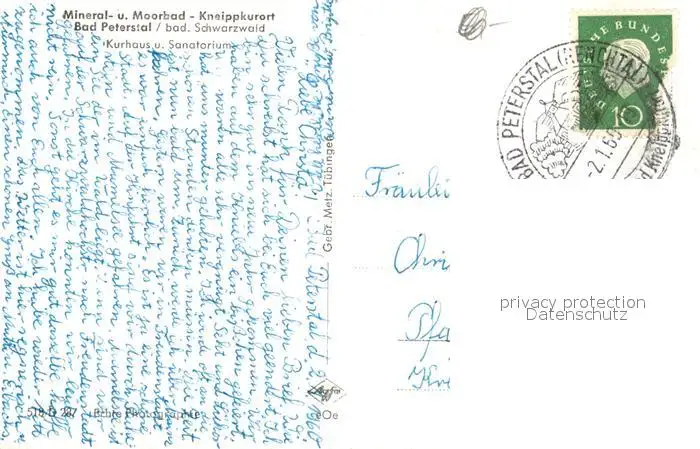 Bad_Peterstal-Griesbach Kurhaus Sanatorium Kurort im Schwarzwald Bad_Peterstal-Griesbach postalisch gelaufen 1960 Erhaltung siehe scans [FriedD77] Frierer