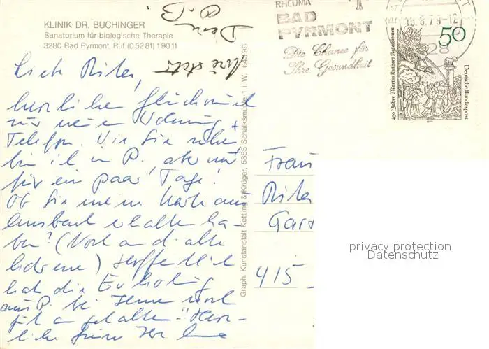 Bad_Pyrmont Klinik Dr. Buchinger Hallenbad Bad_Pyrmont postalisch gelaufen 1979 Erhaltung siehe scans [FriedD77] Frierer