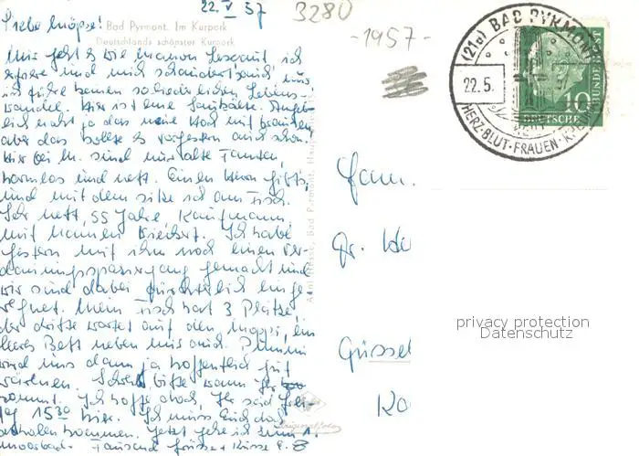 Bad_Pyrmont Partie im Kurpark Bad_Pyrmont postalisch gelaufen 1957 Erhaltung siehe scans [WerneD78] WernPID7