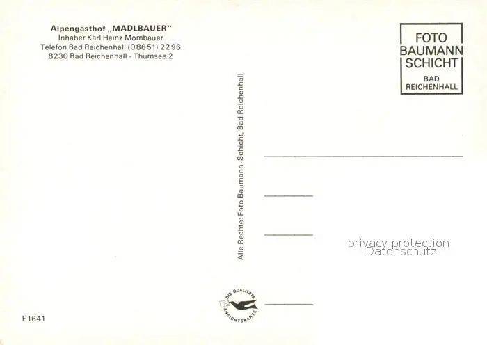 Bad_Reichenhall Alpengasthof Madlbauer Bad_Reichenhall postalisch nicht gelaufen nach 1965 Erhaltung siehe scans [PaolaD17] PaolPID1