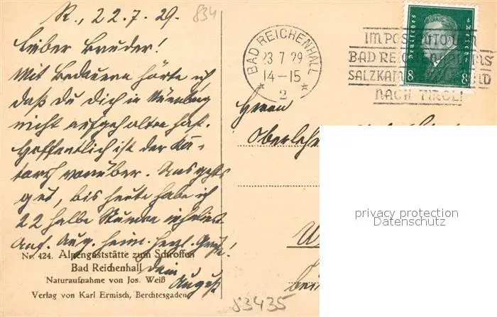 Bad_Reichenhall Alpengaststaette zum Schroffen Bad_Reichenhall postalisch gelaufen 1929 Erhaltung siehe scans [KathaD81] Kathoren