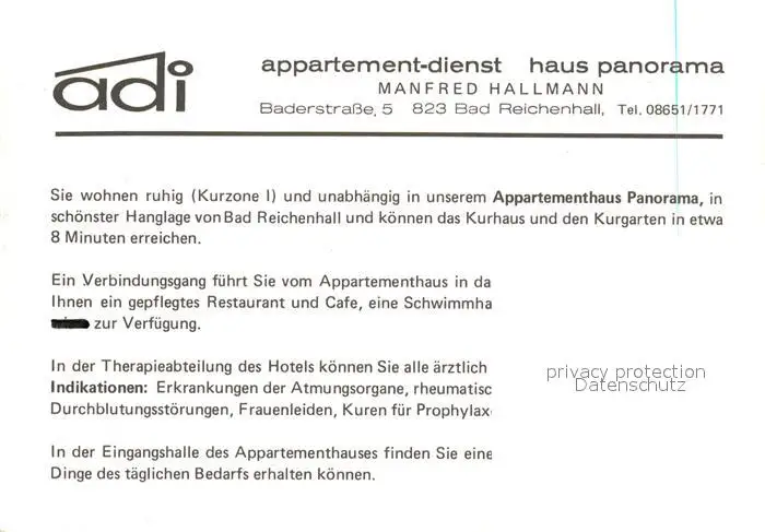 Bad_Reichenhall Appartementhaus Panorama Bad_Reichenhall postalisch nicht gelaufen nach 1965 Keine Postkarte (siehe scan) Erhaltung siehe scans [NatalD47] Keine Postkarte (siehe scan) NataID47