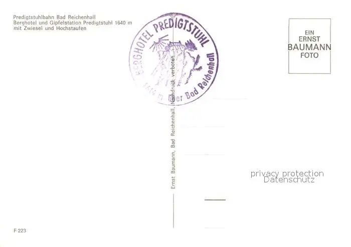 Bad_Reichenhall Berghotel und Gipfelstation Predigtstuhl mit Zwiesel und Hochstaufen Bad_Reichenhall postalisch nicht gelaufen nach 1965 Erhaltung siehe scans [WerneD78] WernPID7