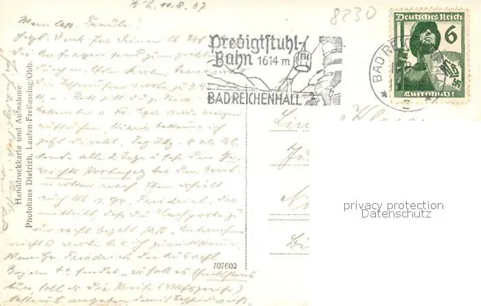 Bad_Reichenhall Bildstoeckl Alm mit Blick auf die Stadt und Stauffen Alpen Bad_Reichenhall postalisch gelaufen 1937 Erhaltung siehe scans [FriedD77] Frierer