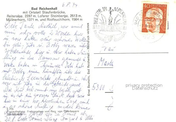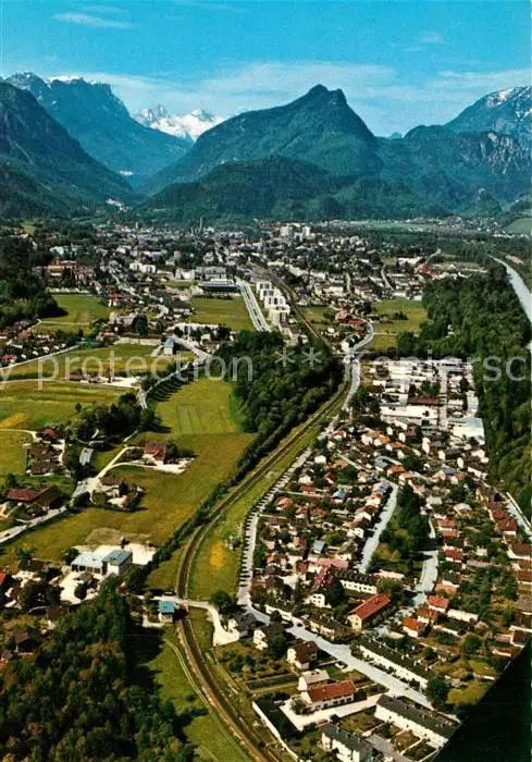 Bad_Reichenhall Fliegeraufnahme Staufenbruecke Reiteralpe Muellnerhorn Bad_Reichenhall postalisch gelaufen 1974 Erhaltung siehe scans [KathaD81] Kathoren
