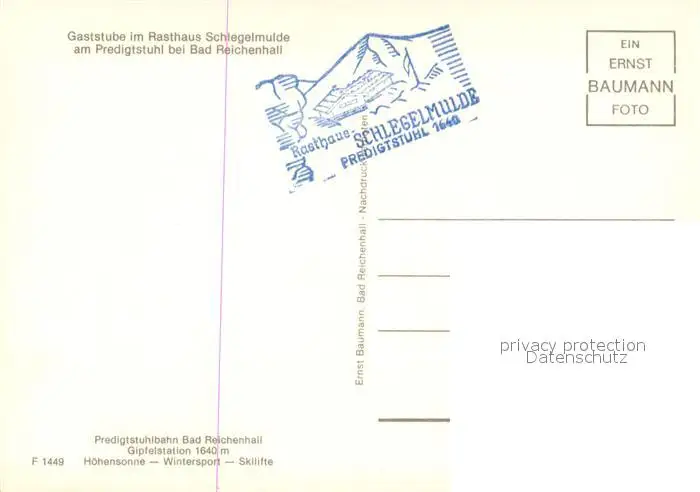 Bad_Reichenhall Gaststube im Rasthaus Schlegelmulde am Predigtstuhl Bad_Reichenhall postalisch nicht gelaufen nach 1965 Erhaltung siehe scans [FriedD77] Frierer