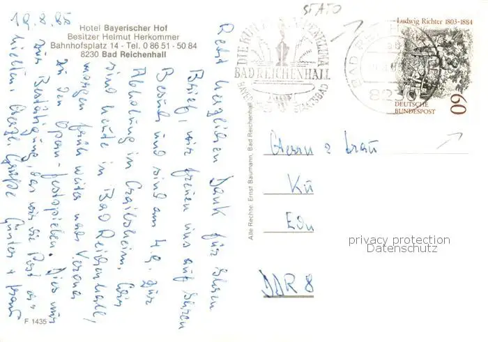Bad_Reichenhall Hotel Bayerischer Hof Restaurant Hallenbad Fremdenzimmer Bad_Reichenhall postalisch gelaufen 1985 Erhaltung siehe scans [FriedD77] Frierer