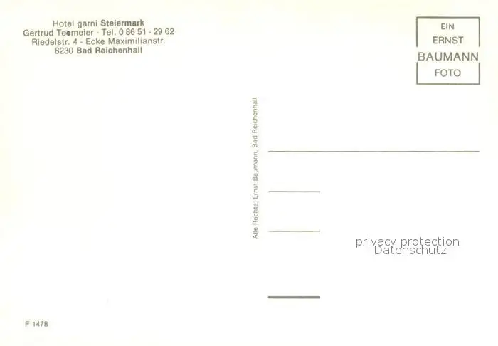 Bad_Reichenhall Hotel garni Steiermark Bad_Reichenhall postalisch nicht gelaufen nach 1965 Erhaltung siehe scans [WerneD78] WernPID7