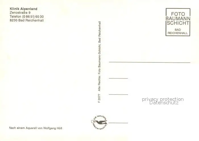 Bad_Reichenhall Klinik Alpenland Kuenstlerkarte Bad_Reichenhall postalisch nicht gelaufen nach 1965 Erhaltung siehe scans [WerneD78] WernPID7