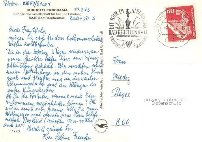 Bad_Reichenhall Kurhotel Panorama Bad_Reichenhall postalisch gelaufen 1986 Erhaltung siehe scans [WerneD78] WernPID7