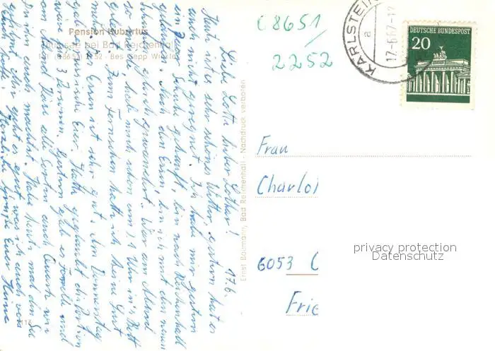 Bad_Reichenhall Pension Hubertus Bootspartie Bad_Reichenhall postalisch gelaufen 1967 Erhaltung siehe scans [FriedD77] Frierer